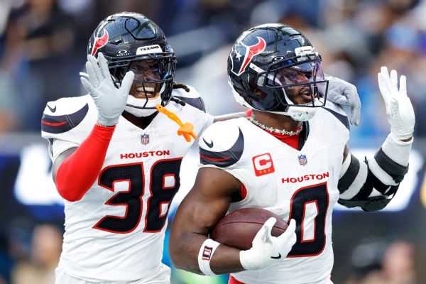 What to watch: The Texans defense was instrumental in the victory, pressuring Chargers quarterback Justin Herbert on 38.1% of his dropbacks and sacking him five times.